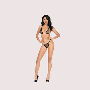 The perfect fit for a Very sexy see through micro bra and thong set, very sexy see through micro bra and thong set looks stunning. This set has been designed with transparent micro cups and very sexy fully see through thong. In Black color .